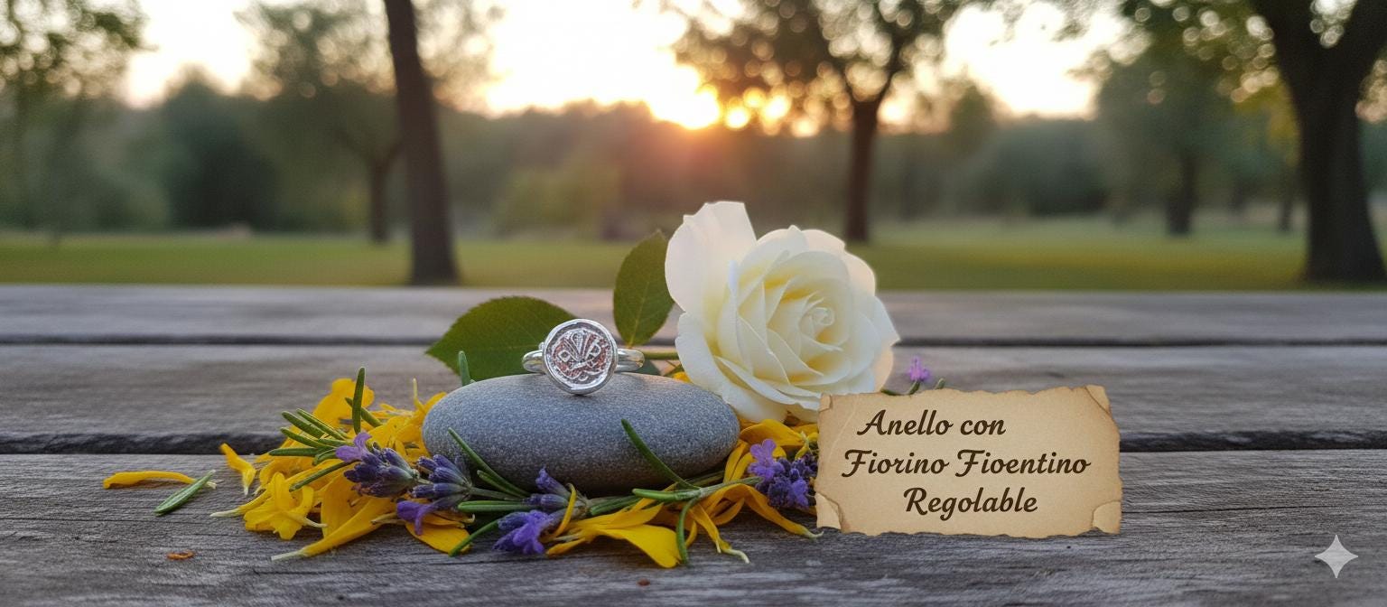 An elegant and symbolic jewel inspired by the history of Florence. This handcrafted ring is made of 925 Silver with a finish available in: Shiny silver Gold plated silver The protagonist is the Florentine Fiorino, the historical symbol of the city of Florence, an emblem of power, beauty, and rebirth.